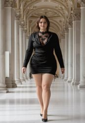 Συνδυάστε αυτό το φόρεμα με τις αυτοκόλλητες κάλτσες μεγάλα μεγέθη από το Leg's Boudoir και ασημένια τακούνια για ένα κομψό και αισθησιακό outfit, όπως φαίνεται στη φωτογραφία του μοντέλου.