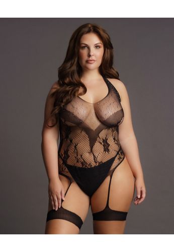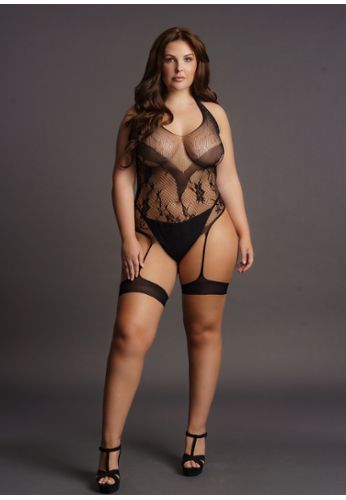 Dentelle et voile sur les hanches, ce body grande taille est tout aussi glamour que sexy.