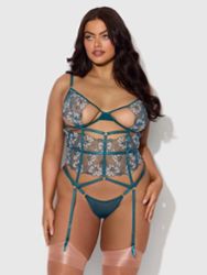 Bustier grande taille Nova à armatures avec culotte ouverte et broderies