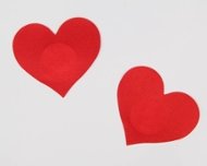 Caches-têtons adéshifs en forme de coeur, légèrement brillants.