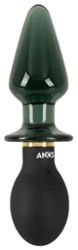 Utilisable par voie anale des deux côtés : un côté avec un plug en silicone soyeux et arrondi, l'autre côté avec un plug en verre massif et lisse qui se termine en cône.