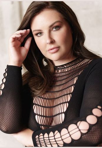 Un look hors du temps, glamour à souhait, une nuisette grande taille en maille bodystocking de haute qualité.