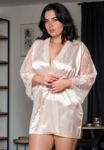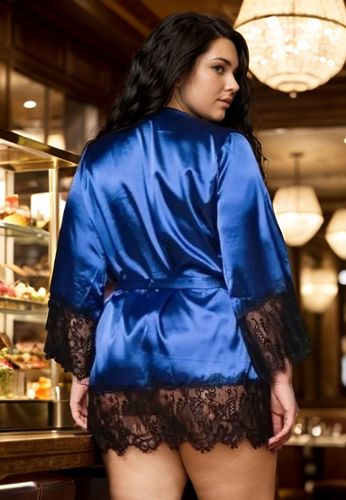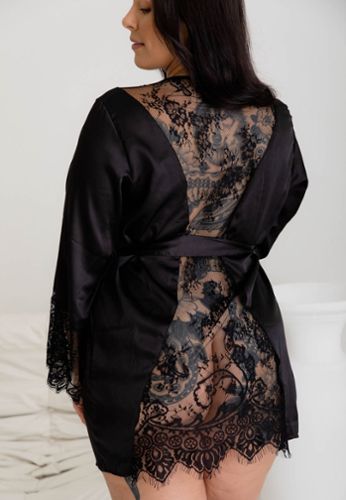 Savant mélange de dentelle et de satin, ce kimono grande taille accompagnera toutes vos tenues.