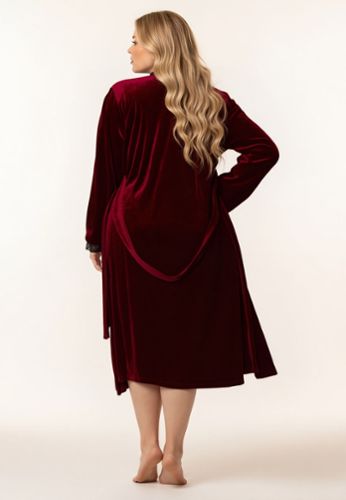 L'Ensemble Sweet Night est la définition du confort sexy. Nuisette en velours bordeaux élastique, fendue sur le côté, lisière en dentelle. Kimono assorti en velours élastique, dentelle noire sur l'ouverture et le bas des manches. Ceinture pour nouer. Un ensemble doux, élégant et irrésistible.