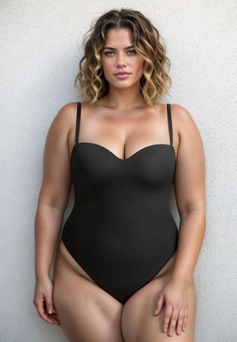 Un body gainant noir ultra polyvalent : bonnets moulés avec armatures pour le maintien, bande silicone anti-glisse pour le porter sans bretelles, et une double couche qui lisse la taille et le ventre avec une fermeté confortable.