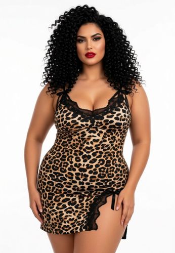 Succombez au charme sauvage de cette nuisette léopard aux découpes sensuelles sur le haut des cuisses.