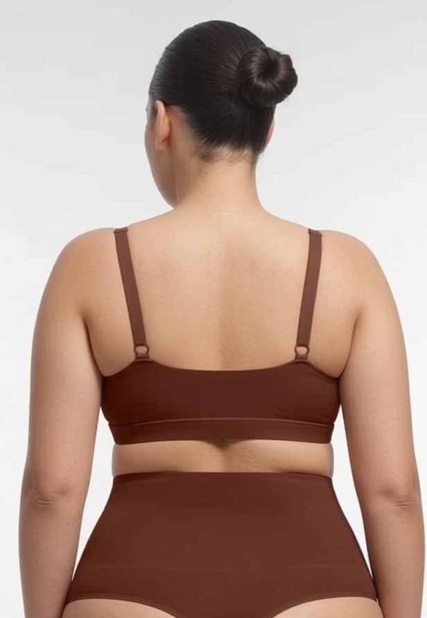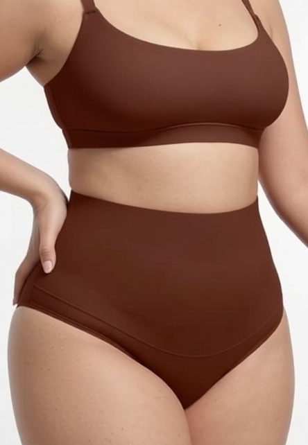 Une culotte gainante couleur chocolat qui tient ses promesses : taille haute pour lisser et sculpter, coupe string pour un rendu zéro démarcation. Confort seconde peau, maintien doux, et une ceinture qui reste en place.