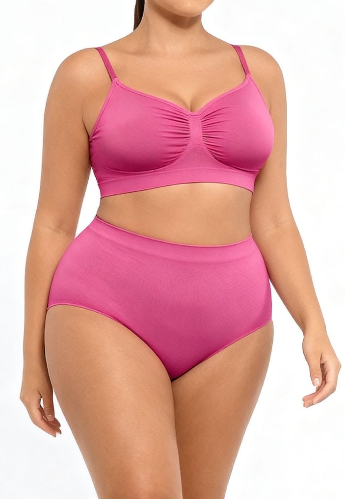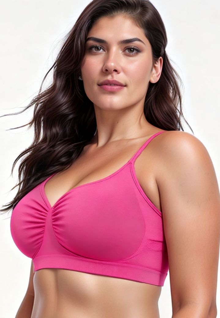 Un soutien-gorge rose qui mixe confort et confiance. Le froncé sur le devant dessine un galbe naturel, les bretelles ajustables restent confortables, et les côtés hauts lissent la ligne du dos pour un rendu net sous vos vêtements.