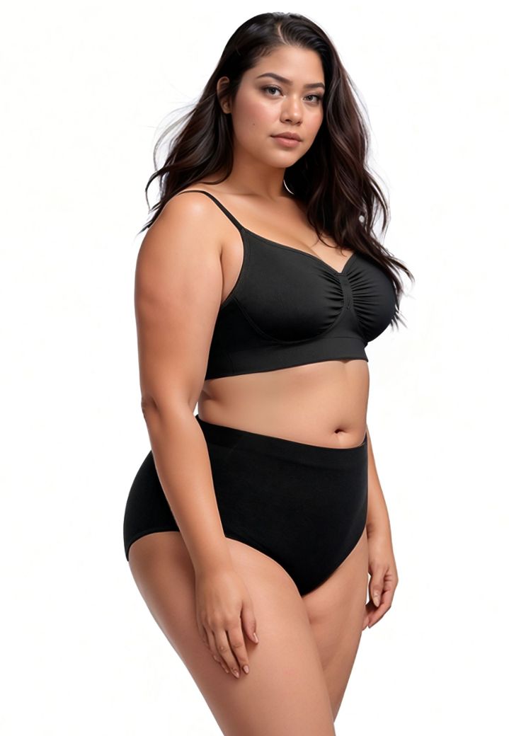 Un soutien-gorge noir qui fait tout, sans effort. Le froncé sur le devant donne un galbe naturel, les bretelles ajustables restent confortables, et les côtés hauts lissent la ligne du dos pour un rendu propre sous vos vêtements.