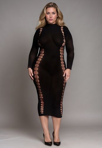 Un look hors du temps, glamour à souhait, une nuisette grande taille en maille bodystocking de haute qualité.