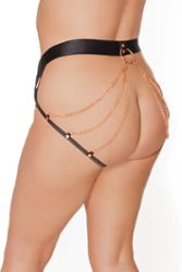 Ce string grande taille à chainettes transforme votre lingerie en véritable bijou interdit. Son grand anneau en métal rosé laisse partir 6 chainettes délicates qui viennent orner votre peau telle une parure précieuse.