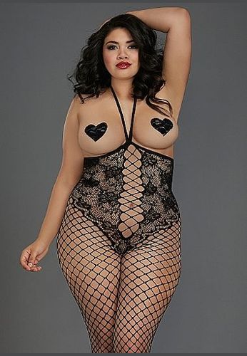 Coprite il vostro corpo con disegni graziosi con questo bodystocking per taglie grandi.