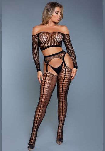 Stile superbo dalla testa ai piedi con questo abito in maglia bodystocking di qualità.