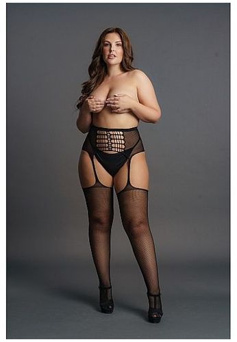 Collant con bretelle in taglia grande, traforato davanti e dietro.