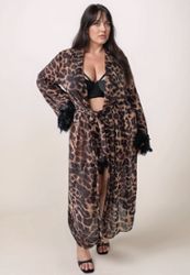 Kimono lungo Leopardo Taglia grande Chiffon e piume | Lingerie