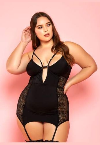 Una scollatura mozzafiato per questo body in pizzo di taglia grande.