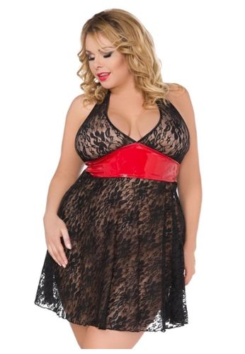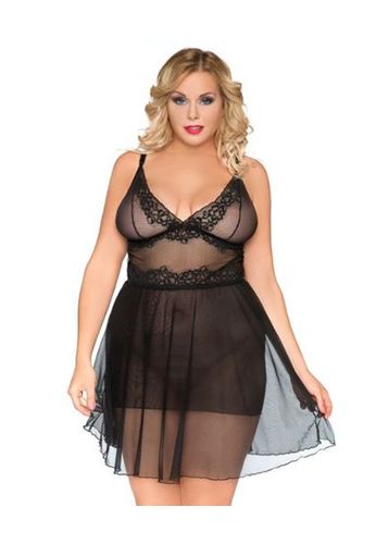 Un sublime gioco di trasparenze per questo babydoll di taglia grande che vi mostrerà al meglio.