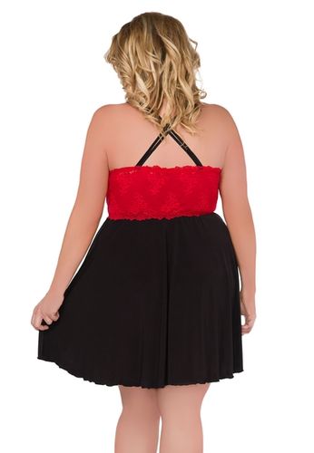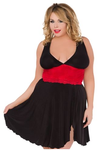Babydoll a taglia grande con fascia rossa sotto il seno.