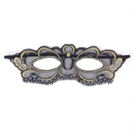 Maschera in tulle e pizzo, nella versione nera con fili d'oro. La versione bianca è semplice.