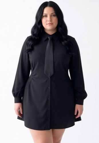 Harvard è il look “impeccabile” che può diventare super sexy in due mosse. Un abito camicia nero con cravatta inclusa (removibile): abbottonato per un effetto chic, oppure sbottonato per una vibe molto più hot.