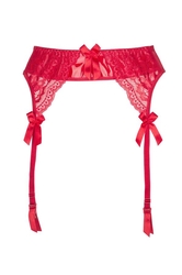 Un reggicalze rosso passione di taglia grande in tessuto laccato come il vinile, ma molto più confortevole.