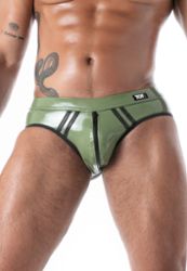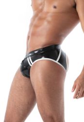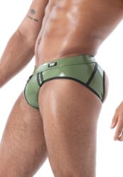 Slip latex aperto uomo second skin TOF Paris vita bassa fodera jersey fatto in Francia