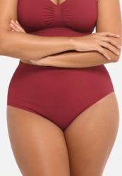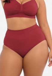 Slip vita alta seamless bordeaux controllo addome leggero tassello antibatterico effetto glutei arricciato copertura totale taglie forti