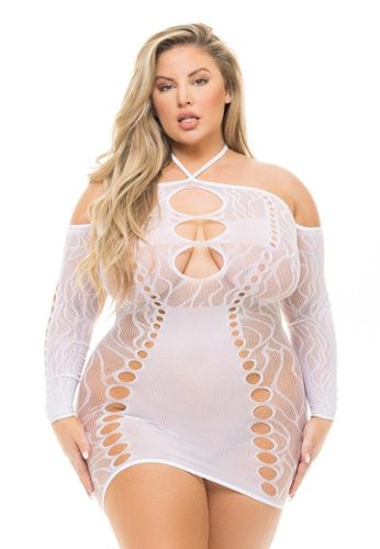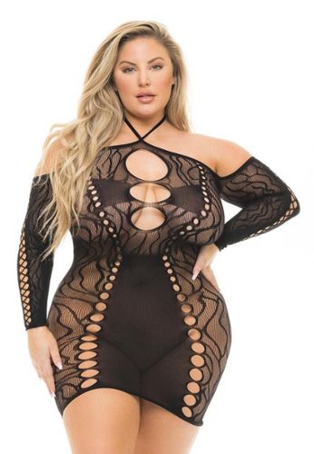 Scoprite il nostro babydoll nero velato di taglia grande con reggicalze integrato e frusta rimovibile. Lacci sulla schiena e sul collo con fiocchi.