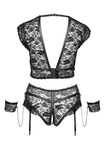 Questo bodystocking in rete a rombi rivela la vostra sensualità con i suoi cut-out strategici e l'allacciatura audace.