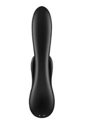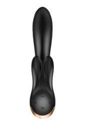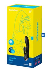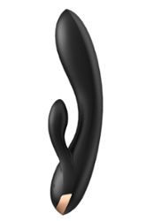 Il vibratore rabbit nero Double Flex di Satisfyer stimola il punto G, il clitoride e le labbra esterne grazie alla sua doppia stimolazione. Dispone di 3 potenti motori. È collegato.
