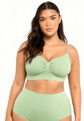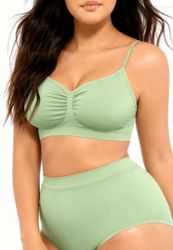 Deze amandelgroene bh is gemaakt om met u mee te bewegen. De rimpeling in het midden zorgt voor een flatterende, natuurlijke vorm, terwijl de ultra zachte stof aanvoelt als second-skin.