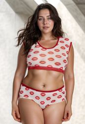 Baby Lips set bestaande uit een t-shirt-stijl top in semi-opaque strech stof en bijpassende shorts.