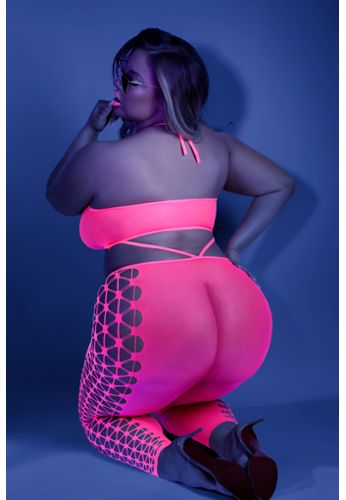 De Bodystocking Een Nacht in Tulum is een gedurfd stuk dat speelt met contrasten. Vervaardigd uit zwart netwerk dat zeer stretch is, deze bodystocking presenteert een opaque accent in de vorm van een V die uw silhouet elegant sculpteert. Mini lengte, fijne bandjes en ultra-sexy design voor een provocerend en onweerstaanbaar uiterlijk.