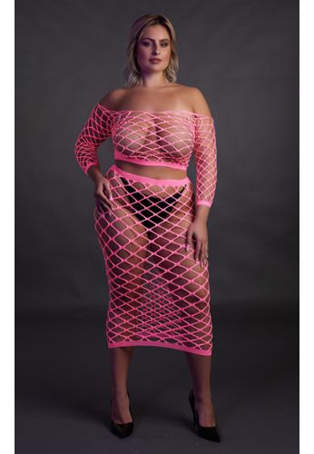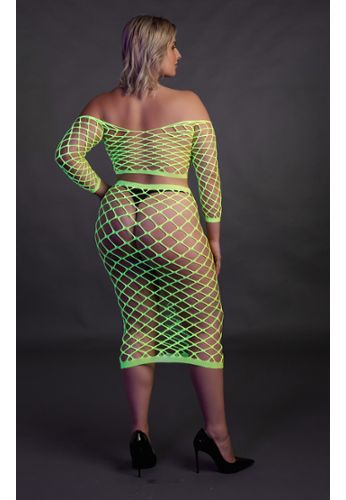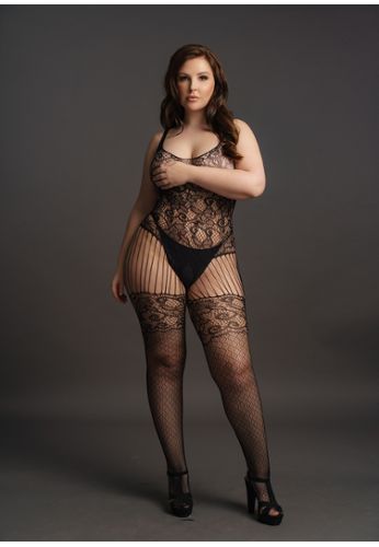 Laat je sensualiteit stralen met deze kanten bodystocking combi die je royale rondingen benadrukt.