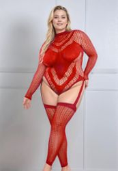 Bodystocking grote maat rood visnet lange mouwen - Passion Intense