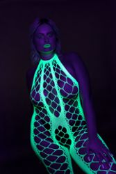 Deze Glow jumpsuit is gemaakt van een zeer rekbare bodystocking-brei die zich als een tweede huid om je rondingen krult.