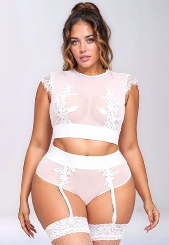 L’ensemble Magic joue la transparence avec beaucoup de style : un crop top en voile élastique semi-transparent, avec de superbes broderies placées là où il faut, et une culotte haute assortie. Les larges élastiques structurent la silhouette, marquent la taille et apportent un vrai maintien. Bonus : des jarretières amovibles pour passer en mode porte-jarretelles en un clin d’œil. Disponible en noir et en blanc.