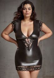 Groote maat jurk in wetlook en kant, verkrijgbaar in maten tot 62.