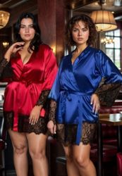 Een prachtige merlot rode en hoge kwaliteit voor deze satijnen kimono met een lichte stretch en kanten afwerking.