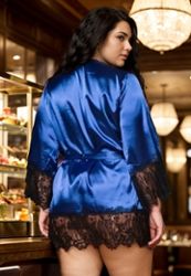 Kimono in grote maat van licht elastisch satijn en kant. In elegant merlotrood.