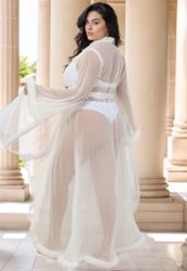 Lange witte badjas grote maat Chiffon en imitatiebont