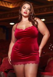 Nachtjapon Midnight Provocation grote maten: Bordeaux Fluweel, Decolleté, Gekruiste Bandjes