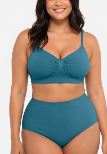 Een petrolblauwe bh die comfort en uitstraling combineert. De rimpeling aan de voorkant geeft een natuurlijke vorm, de verstelbare bandjes zitten comfortabel, en de hoge zijkanten helpen de ruglijn gladder te maken onder kleding.