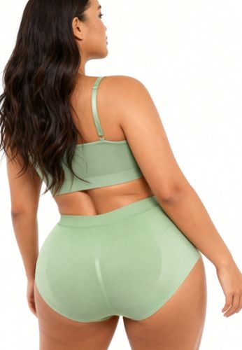 Een amandelgroene high-waist slip die de lijn verzacht en ondersteunt met echt comfort. Volledige bedekking, een hoge taille die stabiel blijft en een zachte 4-way stretch die meebeweegt zonder te knellen.