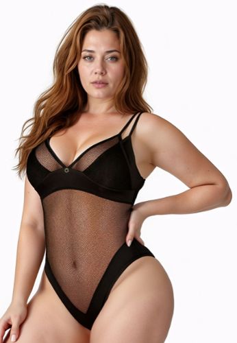 Een heel mooi rompertje van grote maat in gebreide bodystocking van hoge kwaliteit, geschikt voor alle lichaamsvormen