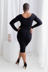 Van kantoor tot cocktails, als bruiloftsgast of feestgastvrouw, deze jurk is uw bondgenoot. De brede open hals benadrukt uw schouders. De in vier richtingen rekbare stof omarmt uw curves met gratie. De geïntegreerde shapewear houdt uw buik strak en onder controle. De lange mouwen beeldhouwen en modelleren uw armen met elegantie. De midi-lengte tot aan de knie ondersteunt en sculpteert uw abdomen, billen en dijen.