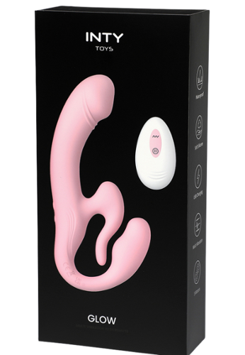 Ontdek de Glow roze strapon uit de Girly collectie van Diva's Boudoir: samen vibreren met de afstandsbediening, 10 vibraties, zachte siliconen en USB.