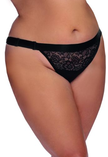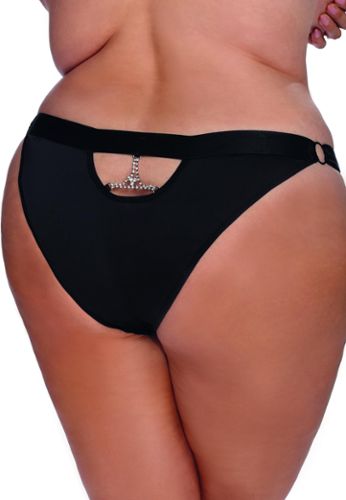 Een zwarte slip die speelt met contrasten: kant voor, satijn achter, en een strass kettinkje zeer sexy dat langs de achterkant loopt. Brede elastische tailleband verstelbaar aan de zijkanten voor perfecte pasvorm. Elegant, comfortabel, verschrikkelijk gewenst.