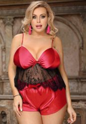 Schitterende kleuren en fijn kant voor deze set van grote maten waarmee je de hele nacht door kunt gaan (of niet...)