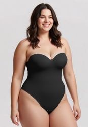 Zwarte corrigerende body bustier voorgevormde cups beugel strapless grote maten